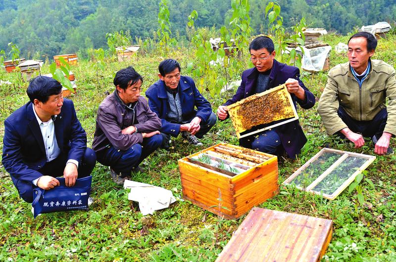 自开展精准扶贫工作以来,在宁强县经贸局的帮扶下,太阳岭镇青林咀村依托当地资源优势,采取“合作社+基地+农户”的模式,制定产业扶持措施,加强技术培训与管理,大力发展中蜂养殖产业,助农增收致富。截至目前,该村养殖中蜂400多箱、产值20多万元,带动20余户农户从事中蜂养殖产业,使户均增收2000元以上。